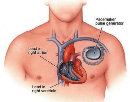 Diagram showing the placement of a conventional pacemaker
